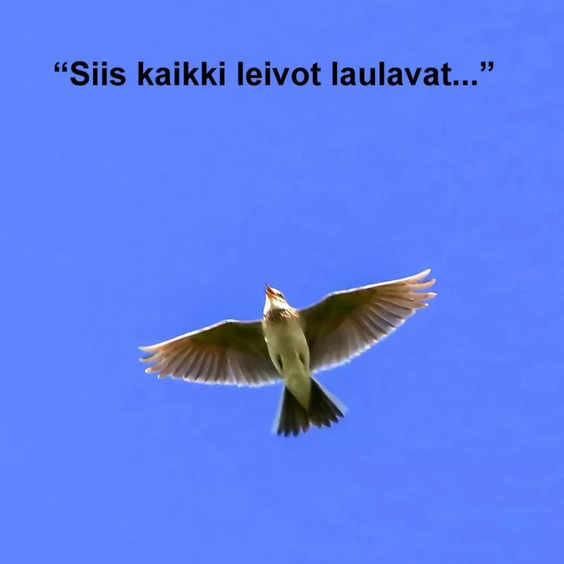 . Lumi on jo peittänyt kukat laaksosessa Järven aalto jäätynyt talvipakkasessa. Come sparrow with joy take a seed from me. Varpunen jouluaamuna Juha Tapio. Varpunen pienoinen syönyt kesäeinehen järven aalto jäätynyt talvi.
